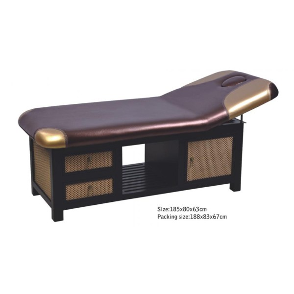 Длинная нижняя полка также имеет два закрытых ящика и тумбочку для хранения аксессуаров и косметических составов, а также одну небольшую открытую часть для самых необходимых инструментов, салфеток и полотенец. Комфорт проведения всех манипуляций обеспечен и для мастера и для клиента, потому что этот комплекс хранения на большой деревянной полке, объединяющий все ножки основания, дает возможность расположить в нем все необходимое для работы любого специалиста. Размеры стола (длина 185 см и ширина 80 см) позволят человеку любой комплекции чувствовать себя на нем безопасно и комфортно. Массажные столы стационарные деревянные создают очень хорошие условия для работы специалистов. К тому же, для удобства работы головная часть двухсекционной лежанки может быть бесступенчато установлена под разными углами, вплоть до сорока пяти градусов. Независимо от того, кабинет массажа это или косметологический кабинет, клиент всегда будет комфортно располагаться, даже при выполнении наиболее динамичных манипуляций.